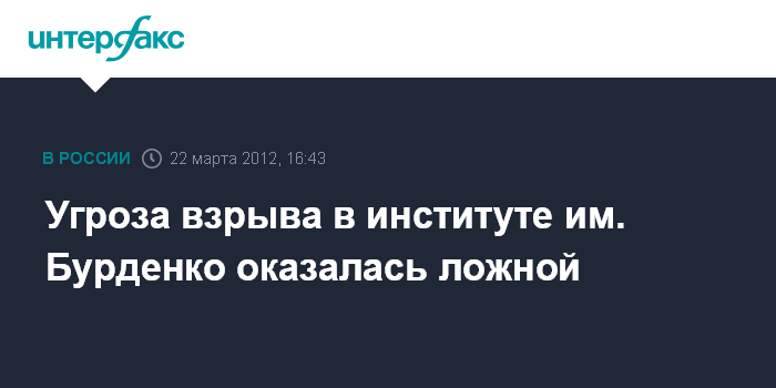 Москва. 22 марта. INTERFAX.RU - Информация об угрозе взрыва в одном из корпусов Института нейрохирургии имени Бурденко не подтвердилась, сообщили "Интерфаксу" в пресс-службе ГУ МВД России по Москве в четверг.