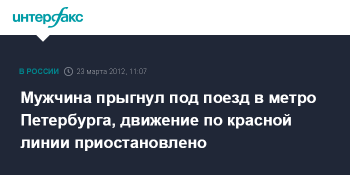 Санкт-Петербург. 23 марта. INTERFAX.RU - Мужчина прыгнул под поезд на станции петербургского метрополитена "Балтийская" в пятницу днем, сообщил "Интерфаксу" источник в правоохранительных органах.