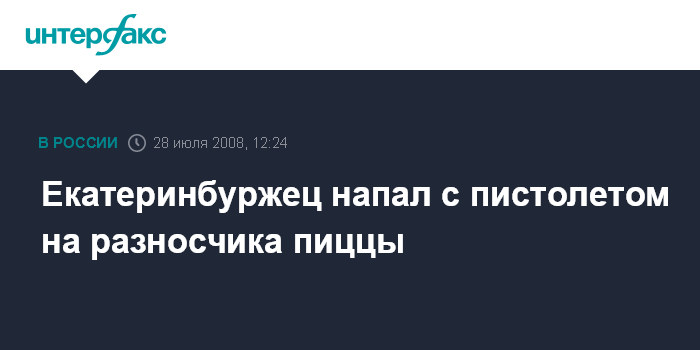 Москва. 28 июля. INTERFAX.RU - В Кировском районе Екатеринбурга местный житель напал с пистолетом на разносчика пиццы.