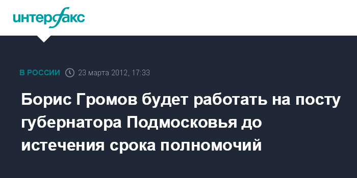 Борис Громов будет работать на посту губернатора Подмосковья до истечения срока полномочий