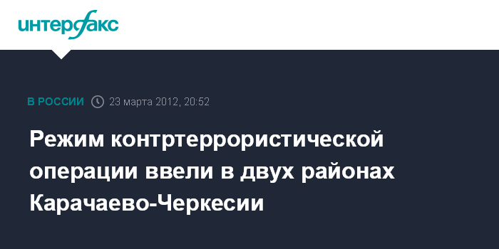 Черкесск. 23 марта. INTERFAX.RU - В двух районах Карачаево-Черкесии введен правовой режим контртеррористической операции (КТО) для пресечения деятельности членов бандгруппы Ислама Узденова, нападавшей на полицейских.
