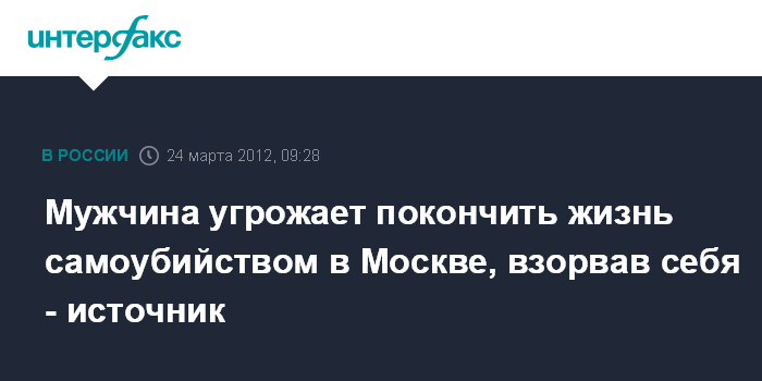 Мужчина угрожает покончить жизнь самоубийством в Москве, взорвав себя - источник