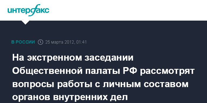 На экстренном заседании Общественной палаты РФ рассмотрят вопросы работы с личным составом органов внутренних дел