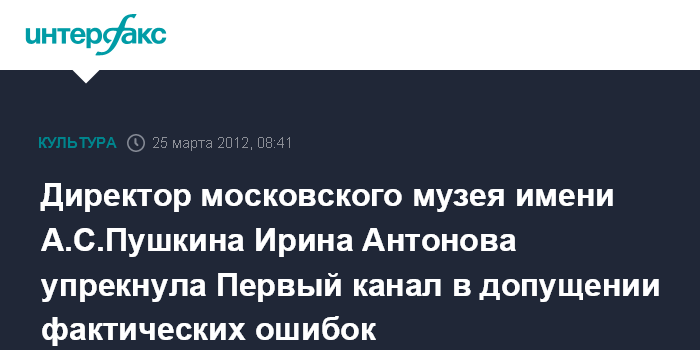 Директор московского музея имени А.С.Пушкина Ирина Антонова упрекнула Первый канал в допущении фактических ошибок