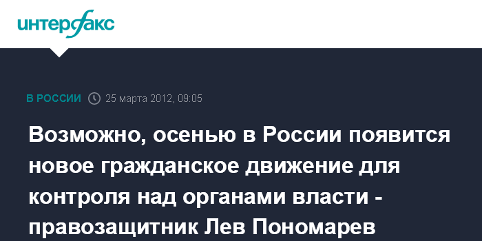 Возможно, осенью в России появится новое гражданское движение для контроля над органами власти - правозащитник Лев Пономарев