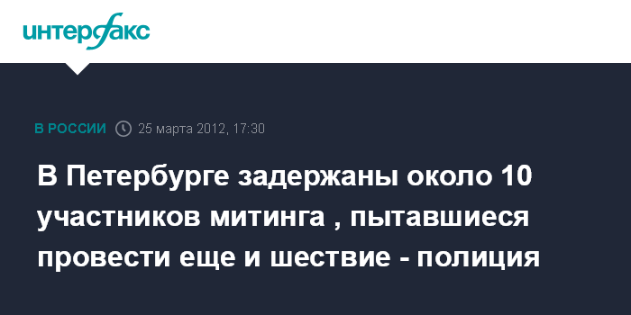 В Петербурге задержаны около 10 участников митинга , пытавшиеся провести еще и шествие - полиция