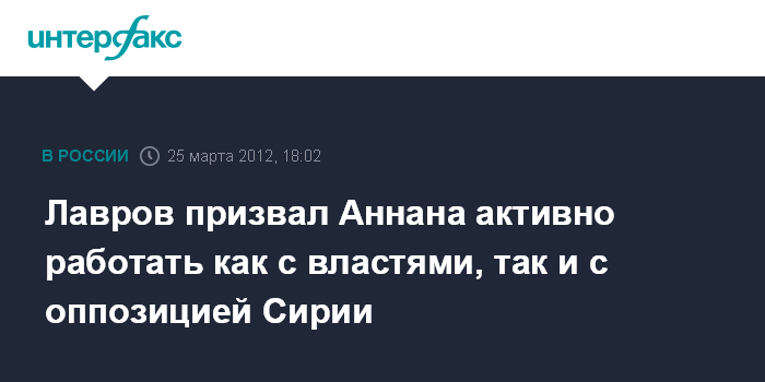 Лавров призвал Аннана активно работать как с властями, так и с оппозицией Сирии