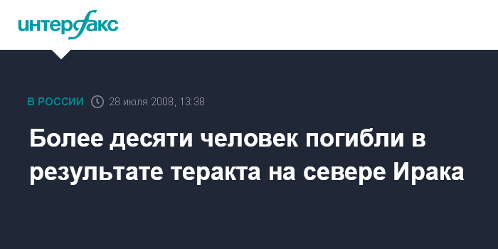 Москва. 28 июля. INTERFAX.RU - Не менее 11 человек погибли и 50 ранены в результате теракта, совершенного в понедельник в городе Киркук, на севере Ирака, сообщают иракские службы безопасности.