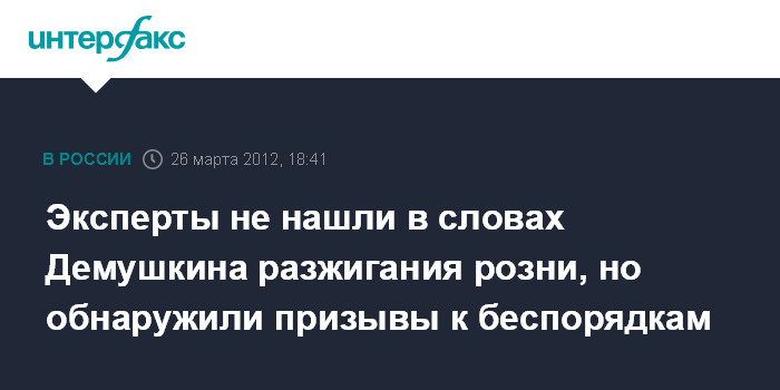 Эксперты не нашли в словах Демушкина разжигания розни, но обнаружили призывы к беспорядкам