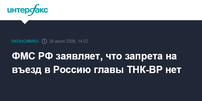 ФМС РФ заявляет, что запрета на въезд в Россию главы ТНК-ВР нет