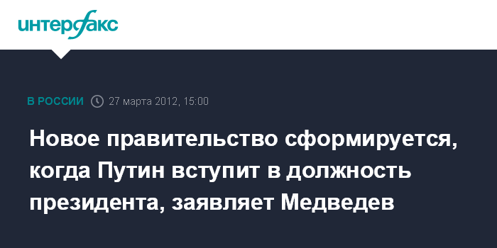 Новое правительство сформируется, когда Путин вступит в должность президента, заявляет Медведев