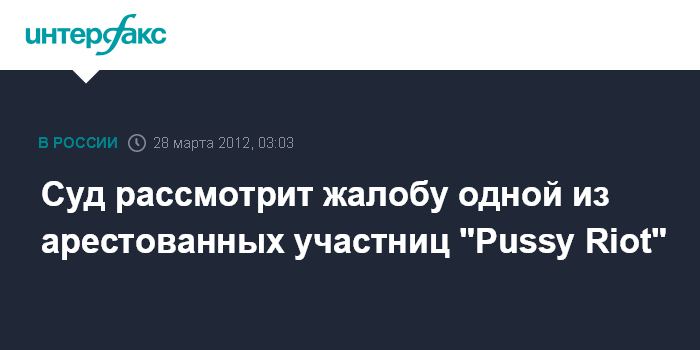 Суд рассмотрит жалобу одной из арестованных участниц "Pussy Riot"