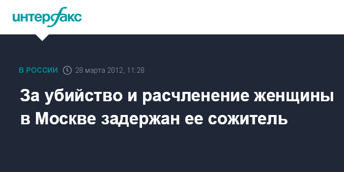 Москва. 28 марта. INTERFAX.RU - Жестокое убийство женщины, останки которой были в течение одного дня найдены в Москве и Подмосковье, раскрыто "по горячим следам", сообщает сайт Следственного комитета РФ.