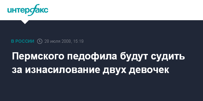 Пермь. 28 июля. INTERFAX.RU - Орджоникидзевский межрайонный следственный отдел СУ СКП по Пермскому краю возбудил уголовное дело по факту изнасилования двух девятилетних девочек.