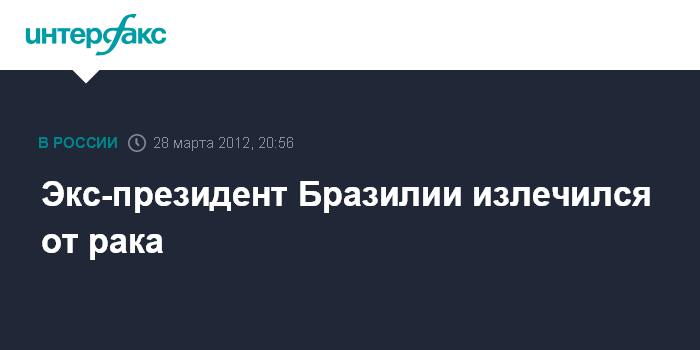 Бразилиа. 28 марта. INTERFAX.RU - Врачи бывшего президента Бразилии Луиса Инасиу Лулы да Силвы сообщили в среду о полной ремиссии диагностированной у него раковой опухоли, говорится в заявлении, распространенном представителями клиники, где он проходил лечение.