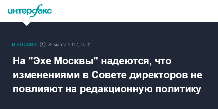 На "Эхе Москвы" надеются, что изменениями в Совете директоров не повлияют на редакционную политику