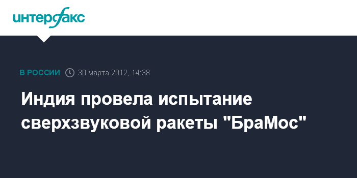 Дели. 30 марта. INTERFAX.RU - Индия в пятницу провела успешное испытание сверхзвуковой ракеты "БраМос" наземного базирования, оснащенную рядом новых систем, сообщил управляющий директор российско-индийского аэрокосмического СП "БраМос" Сиватхану Пиллаи.