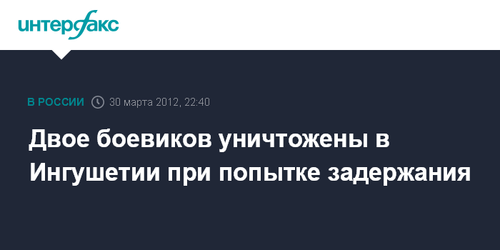 Назрань. 30 марта. ИНТЕРФАКС-ЮГ - В Назрани в пятницу вечером сотрудники правоохранительных органов уничтожили двух боевиков, сообщил агентству "Интерфакс-Юг" источник в правоохранительных органах Ингушетии.