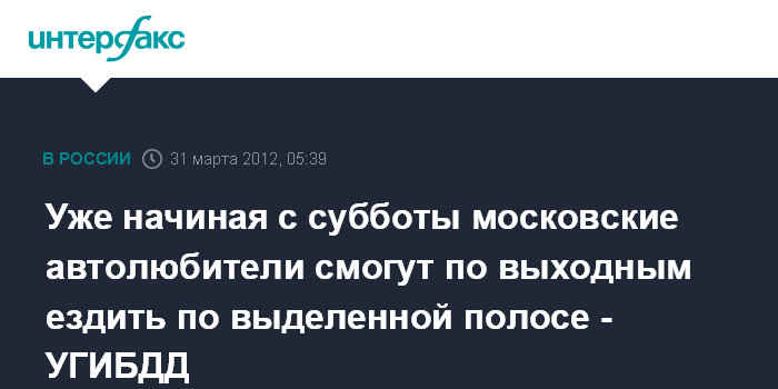Он напомнил, что решение об открытии для простых автолюбителей по выходным и праздникам выделенных полос принято правительством Москвы после детального рассмотрения вопроса в Центре организации дорожного движения Москвы совместно с Управлением ГИБДД ГУ МВД России по Москве и ГУОБДД МВД России. Таким образом, власти и Госавтоинспекция рассчитывают увеличить пропускную способность улично-дорожной сети в этот период времени.