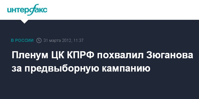 Москва. 31 марта. INTERFAX.RU - На пленуме ЦК КПРФ в субботу в Подмосковье дана высокая оценка тому, как кандидат в президенты РФ, лидер компартии Геннадий Зюганов провел предвыборную кампанию.