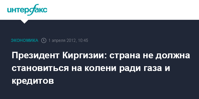 Президент Киргизии: страна не должна становиться на колени ради газа и кредитов