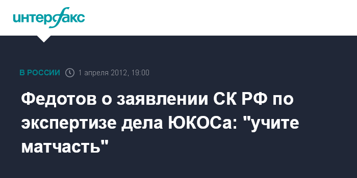 Федотов о заявлении СК РФ по экспертизе дела ЮКОСа: "учите матчасть"