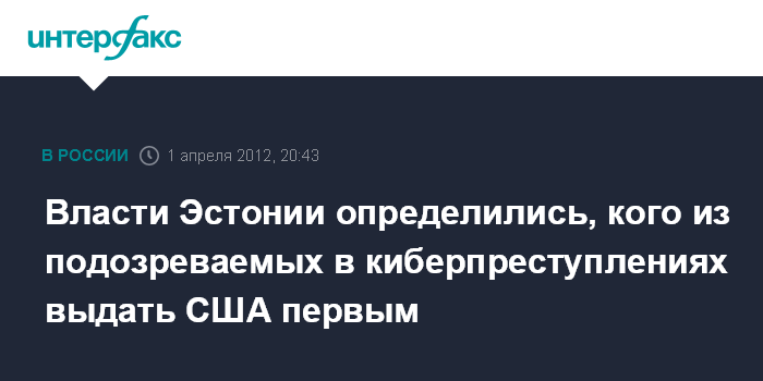 Таллинн. 1 апреля. ИНТЕРФАКС - Первым из членов преступной группировки, подозреваемой в совершении киберпреступлений в отношении собственников компьютеров в США, Эстонией американским властям будет выдан Антон Иванов.