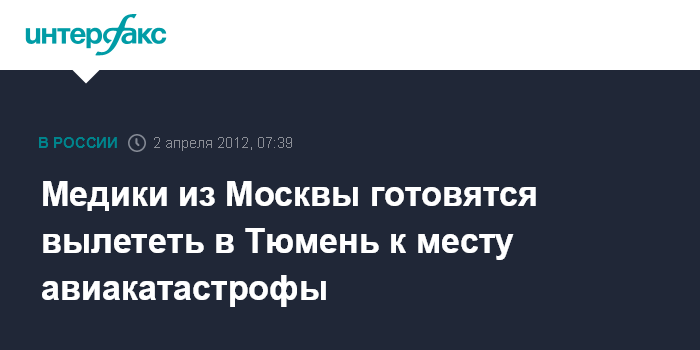 Медики из Москвы готовятся вылететь в Тюмень к месту авиакатастрофы