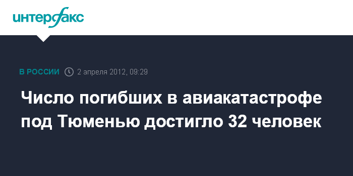 Москва. 2 апреля. INTERFAX.RU - Количество жертв авиакатастрофы под Тюменью достигло 32 человек, сообщили в региональном ГУ МЧС РФ.