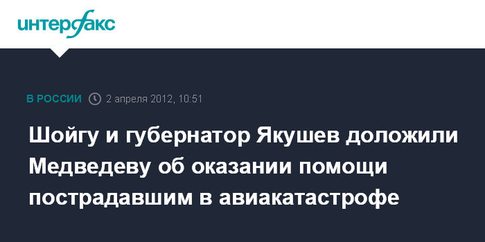Шойгу и губернатор Якушев доложили Медведеву об оказании помощи пострадавшим в авиакатастрофе