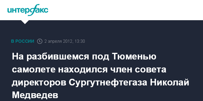 На разбившемся под Тюменью самолете находился член совета директоров Сургутнефтегаза Николай Медведев
