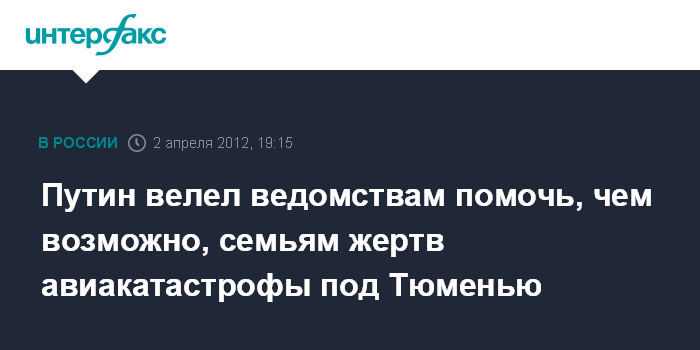 Ново-Огарево. 2 апреля. INTERFAX.RU - Премьер-министр РФ Владимир Путин поручил всем ведомствам оказать всю необходимую помощь семьям погибших и пострадавших в результате крушения самолета под Тюменью.