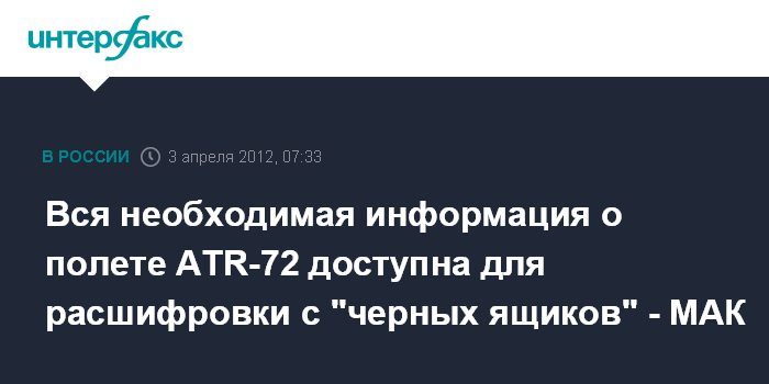 Вся необходимая информация о полете АTR-72 доступна для расшифровки с "черных ящиков" - МАК