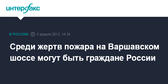 Мсква. 3 апреля. INTERFAX.RU - В Федеральной миграционной службе (ФМС) не исключают, что среди погибших в пожаре на складе на Варшавском шоссе могут быть и российские граждане.