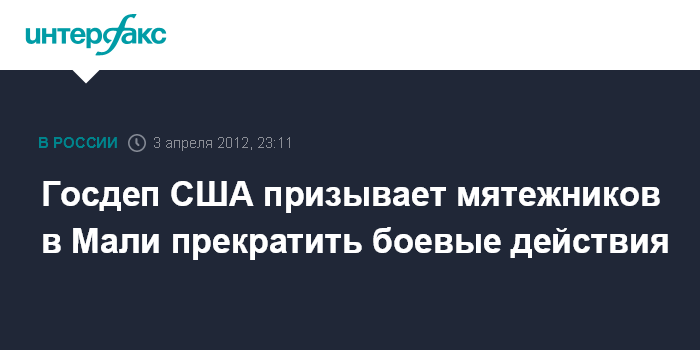 "США призывают группировки мятежников на севере Мали прекратить боевые действия. На кону стоит территориальная целостность страны", - сказала она журналистам в Вашингтоне.
