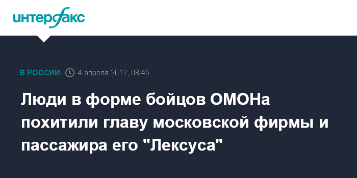 Люди в форме бойцов ОМОНа похитили главу московской фирмы и пассажира его "Лексуса"