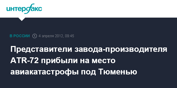 Москва. 4 апреля. INTERFAX.RU - Уполномоченный представитель Франции, где был произведен самолет АТR-72, потерпевший катастрофу под Тюменью, прибыл на место крушения, сообщили в Межгосударственном авиационном комитете (МАК).