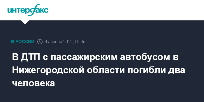 Нижний Новгород. 6 апреля. ИНТЕРФАКС-ПОВОЛЖЬЕ - Два человека погибли в Нижегородской области при столкновении на 112 км трассы на Киров грузовика и пассажирского автобуса, сообщили агентству "Интерфакс - Поволжье" в пресс-службе ГУ МЧС по региону.