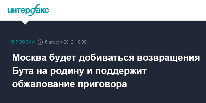 Москва будет добиваться возвращения Бута на родину и поддержит обжалование приговора