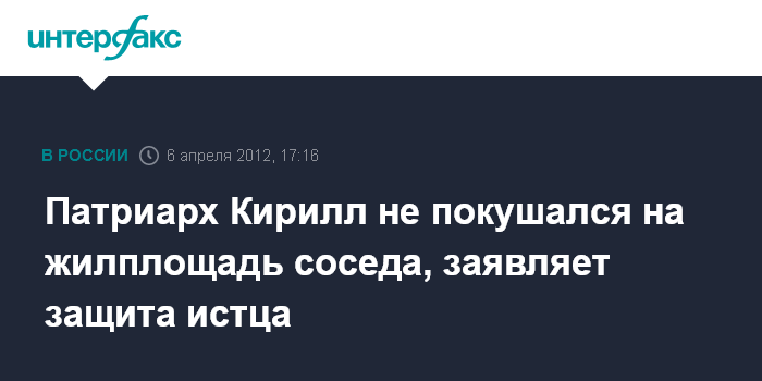 Патриарх Кирилл не покушался на жилплощадь соседа, заявляет защита истца