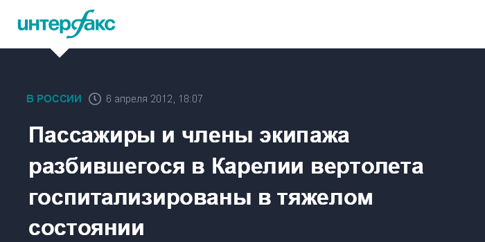 Пассажиры и члены экипажа разбившегося в Карелии вертолета госпитализированы в тяжелом состоянии