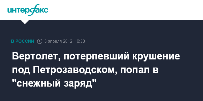 Вертолет, потерпевший крушение под Петрозаводском, попал в "снежный заряд"