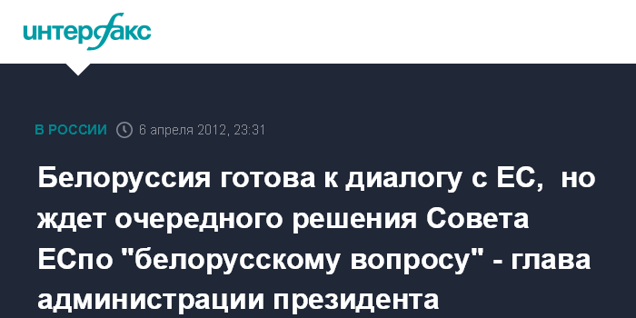 Белоруссия готова к диалогу с ЕС, но ждет очередного решения Совета ЕСпо "белорусскому вопросу" - глава администрации президента