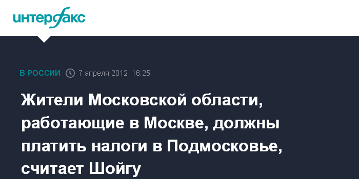 Жители Московской области, работающие в Москве, должны платить налоги в Подмосковье, считает Шойгу