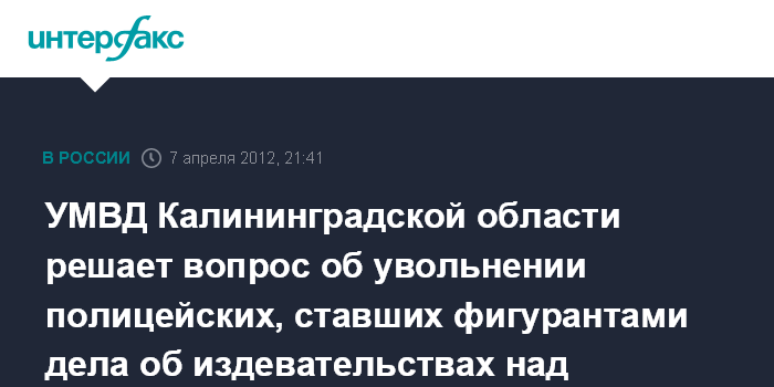 УМВД Калининградской области решает вопрос об увольнении полицейских, ставших фигурантами дела об издевательствах над задержанным