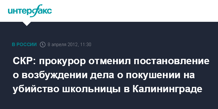 СКР: прокурор отменил постановление о возбуждении дела о покушении на убийство школьницы в Калининграде