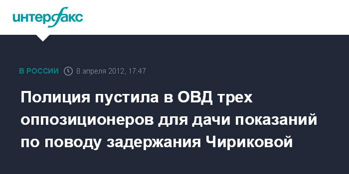 Полиция пустила в ОВД трех оппозиционеров для дачи показаний по поводу задержания Чириковой