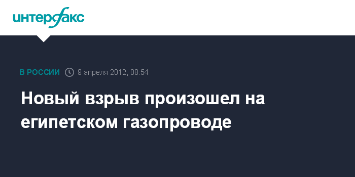 Каир. 9 апреля. INTERFAX.RU - Взрыв прогремел на газопроводе, по которому египетский газ поставляется в Иорданию и Израиль, сообщили местные власти.