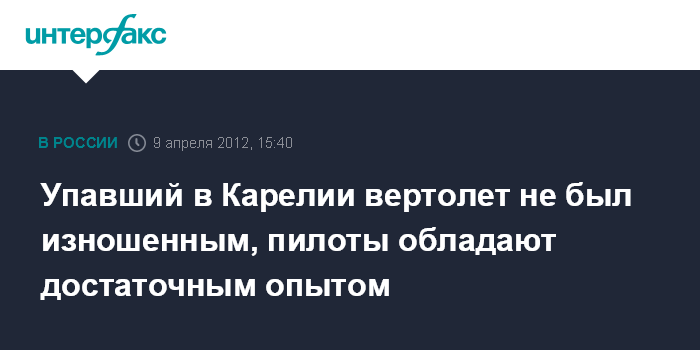 Упавший в Карелии вертолет не был изношенным, пилоты обладают достаточным опытом