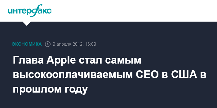 Вашингтон. 9 апреля. INTERFAX.RU - Глава Apple Тим Кук стал самым высокооплачиваемым главным исполнительным директором в США по итогам 2011 г., сообщает агентство Bloomberg.